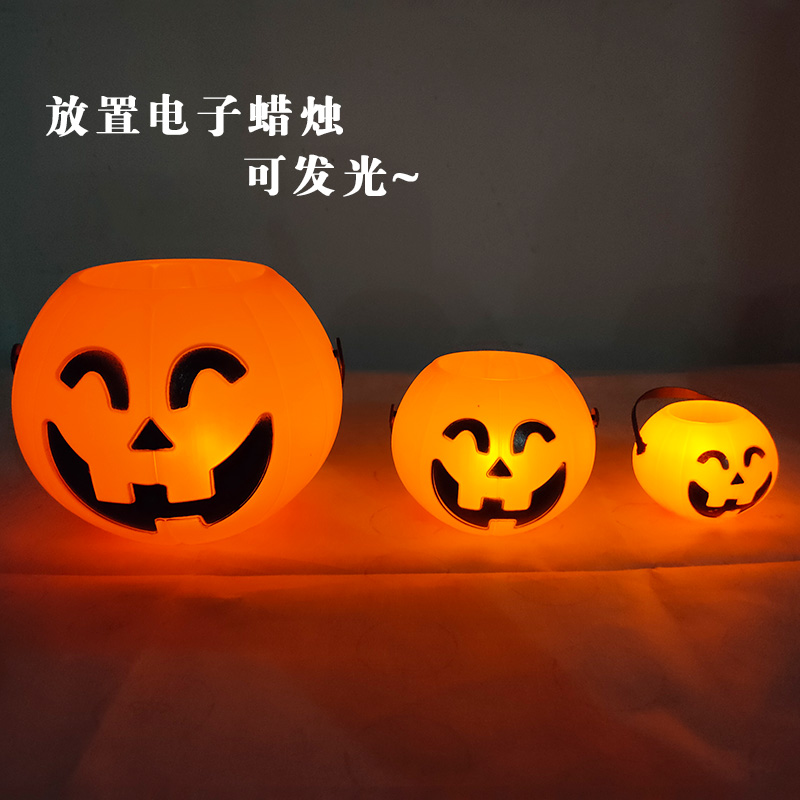 Halloween pumpkin lantern pumpkin barrel ghost festival children's hand candy jar bar luminous pumpkin decoration props