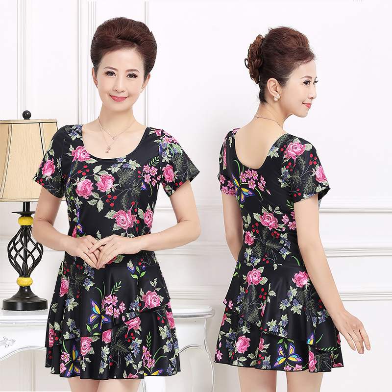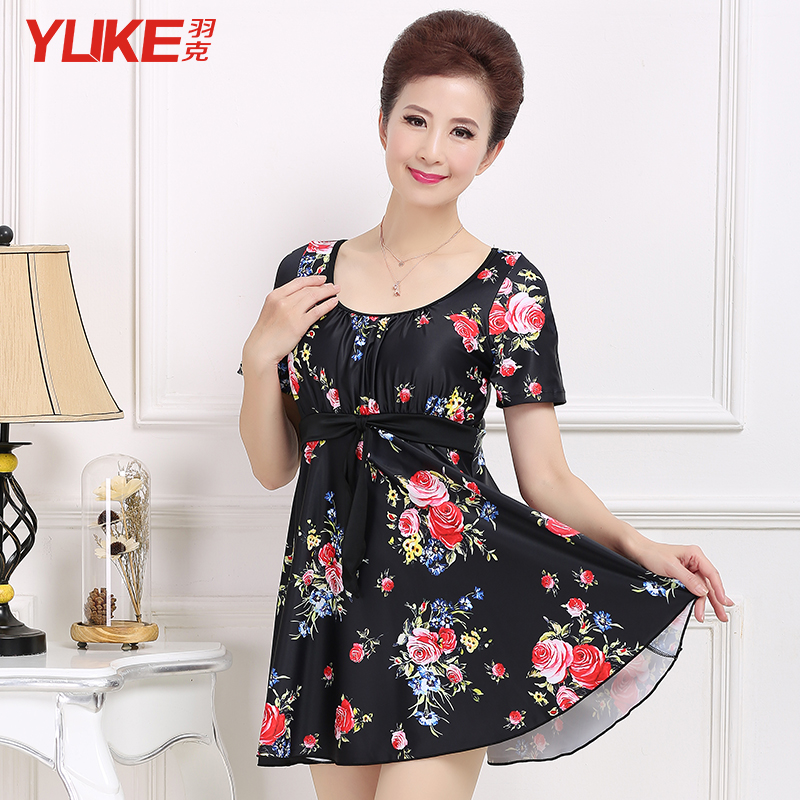 Swimsuit Ladies One Piece Mother Swimsuit Skirt Boxer Large Size Showing Thin Cover Belly Conservative Middle-aged and Elderly Hot Spring Swimwear