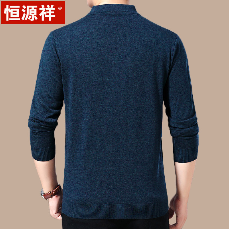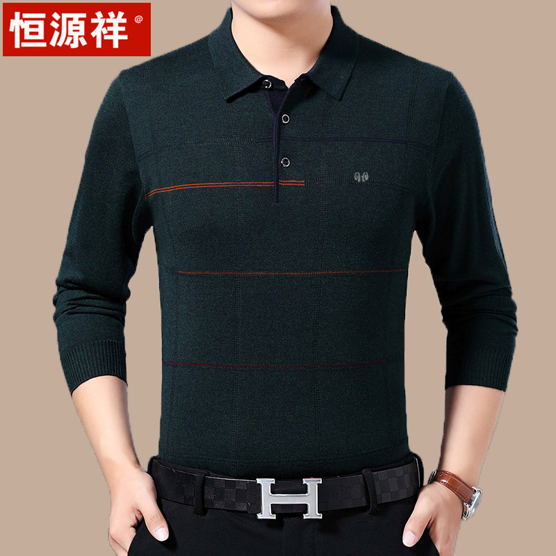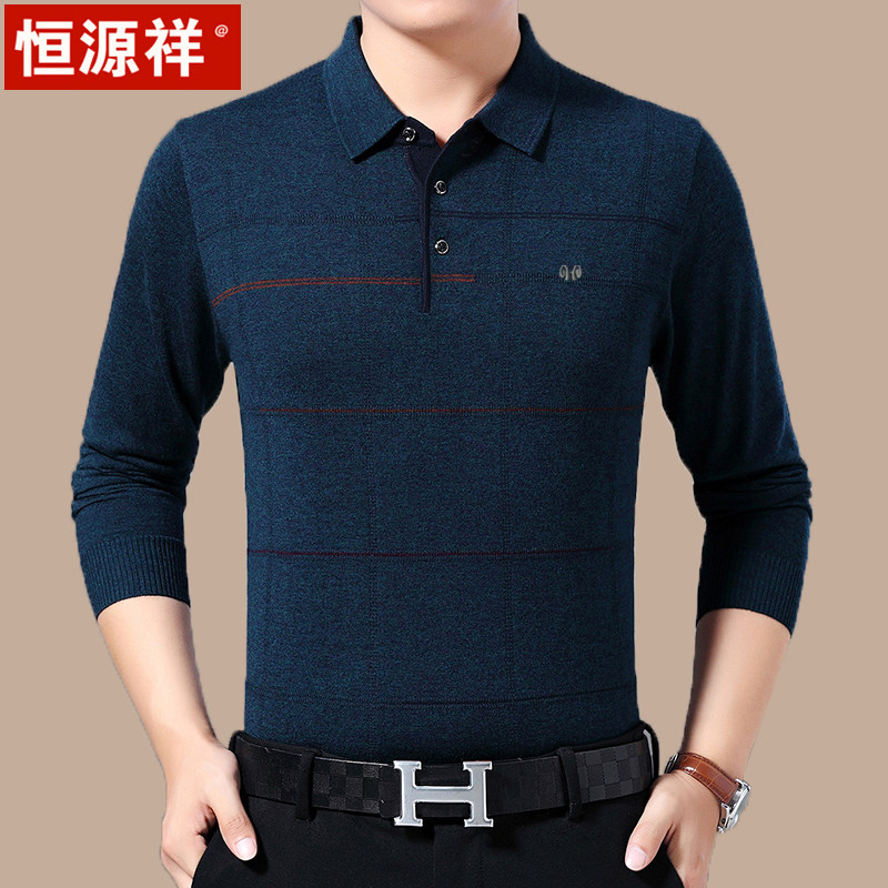 Hengyuan Xiang Long Sleeve T-shirt Men's Fall Middle Aged Casual Blouse Dad Dress With a thin wool-bearing undershirt