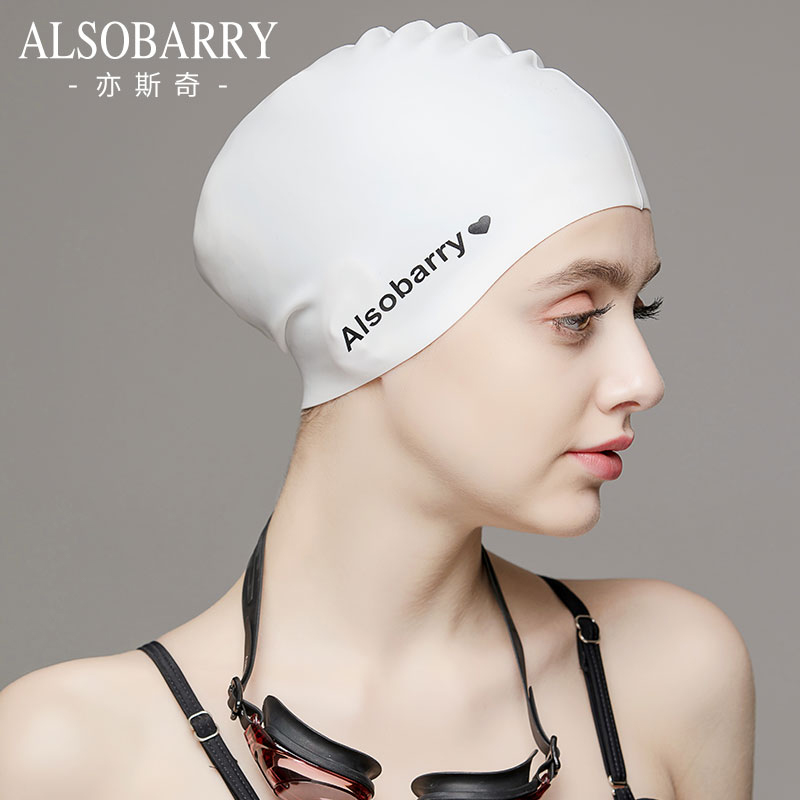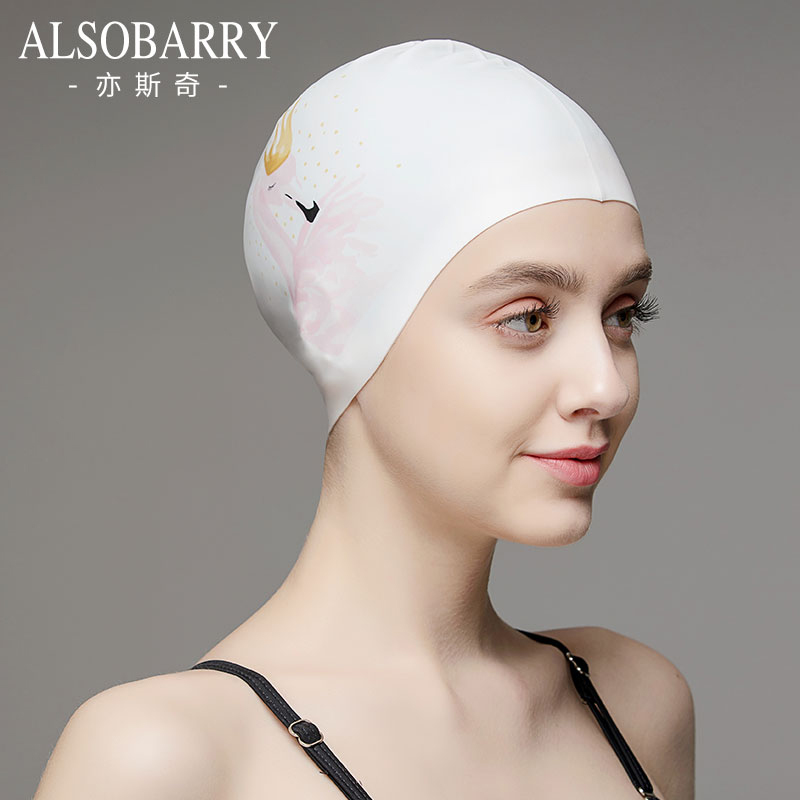 Silicone swim cap waterproof ear add long hair not to head professional comfort adult black swan net red swimming cap