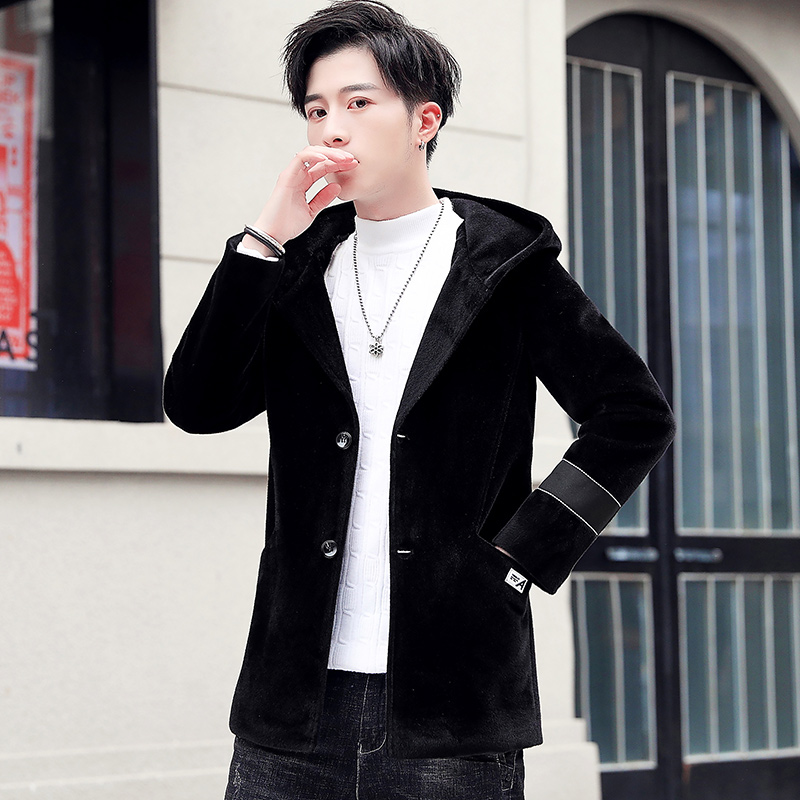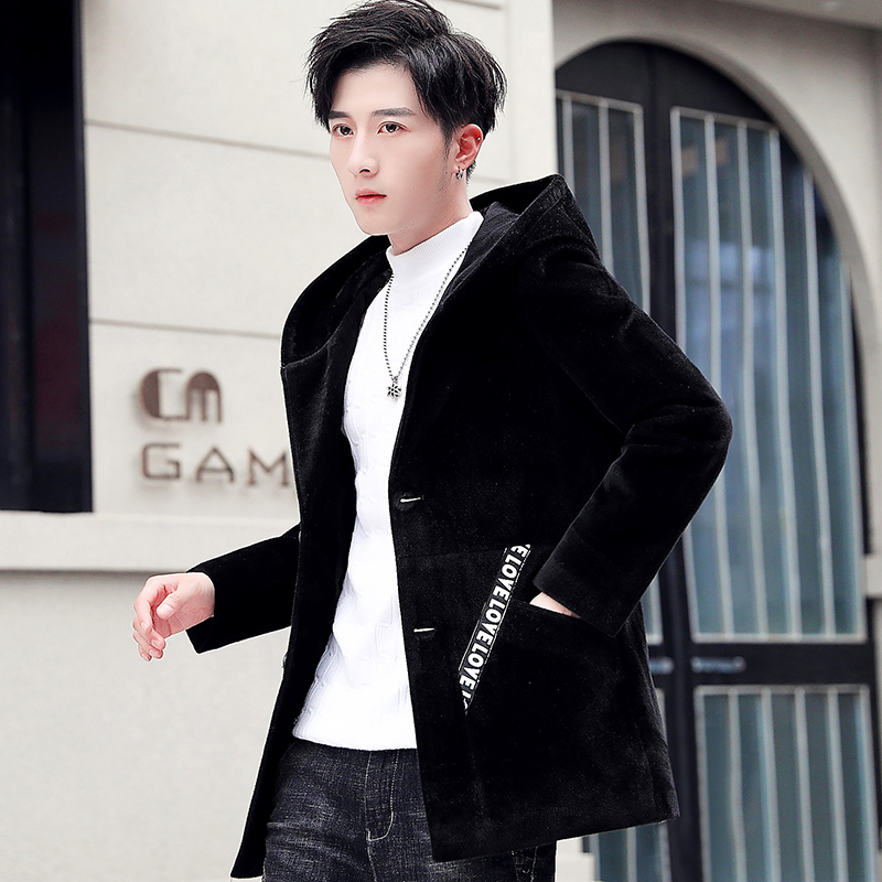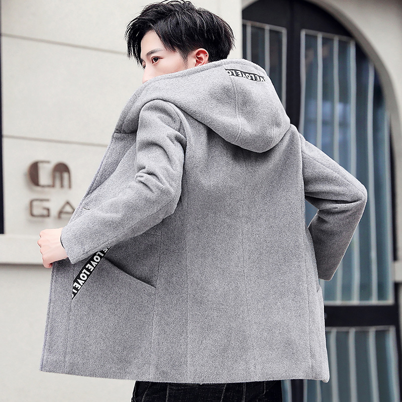 Autumn and winter windbreaker men's medium and long version of slim Korean trend handsome youth leisure British wind wool coat coat coat