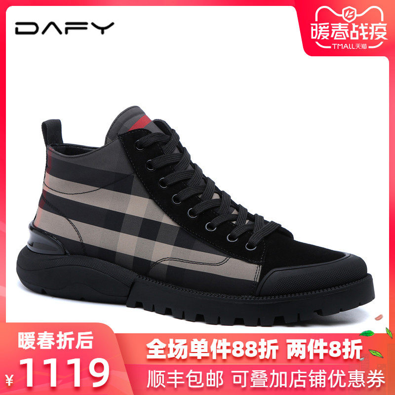Light extravagant brand Korean version trendy high cylinder leather shoes men 100 hitch plaid lace cotton shoes Inn wind leisure men's clothing youth