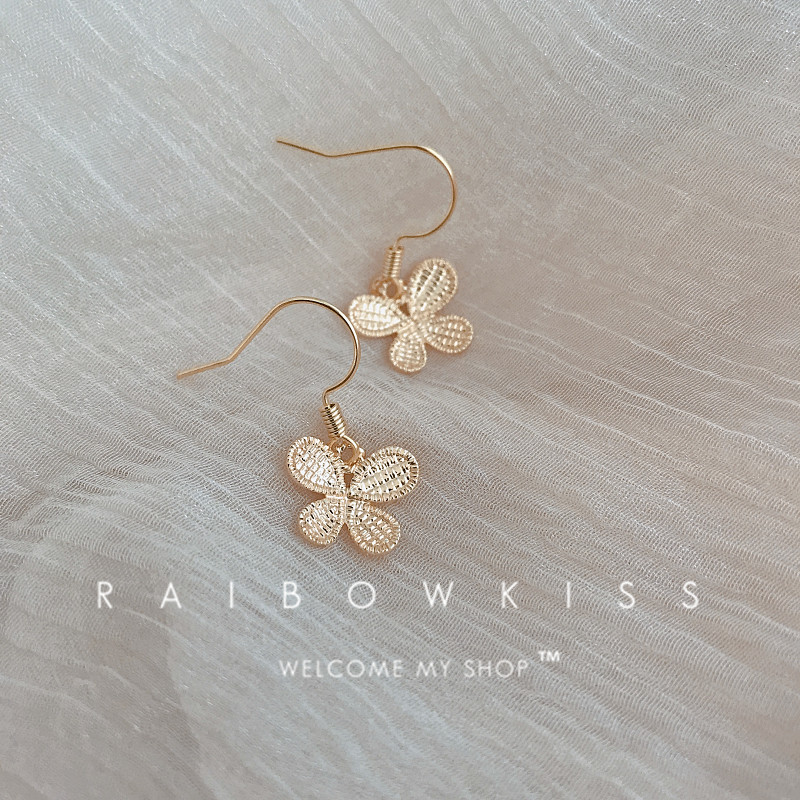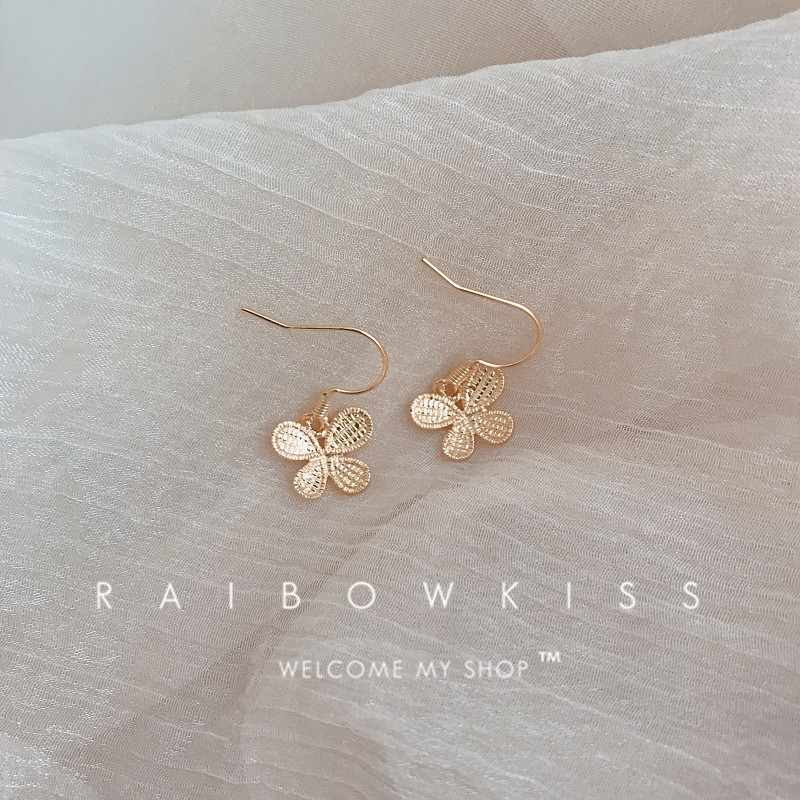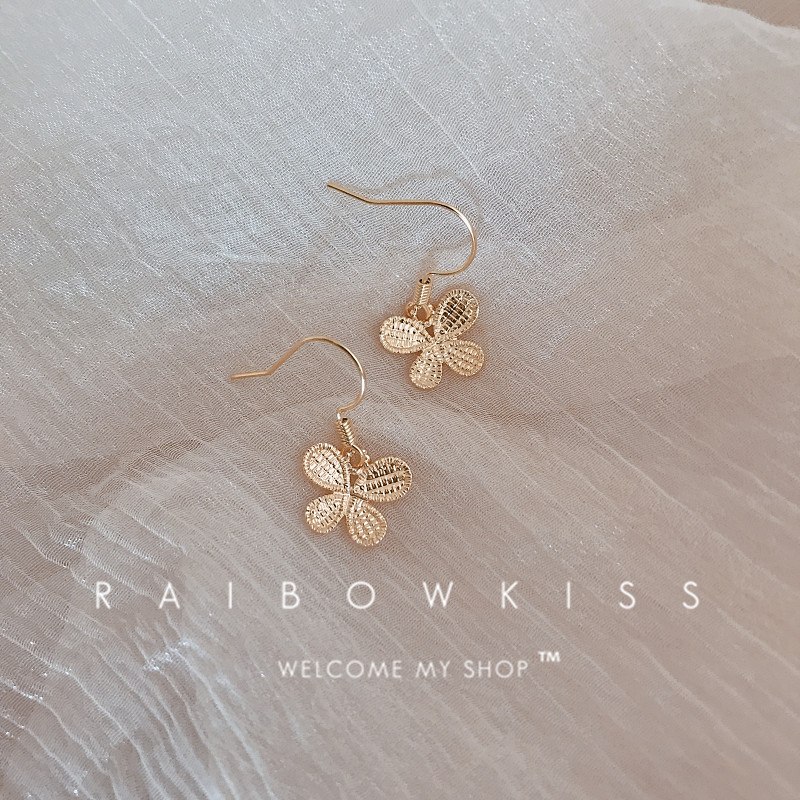 Ultra Fairy sweet and golden texture Butterfly Earrings 18k Bag Golden Earrings Earrings Small Fresher Girl Feel Ear Pin