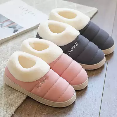 Cotton slippers tall man bag heel thick bottom winter plus velvet ankle protection Mother Moon child maternal soft bottom hair mouth with heel