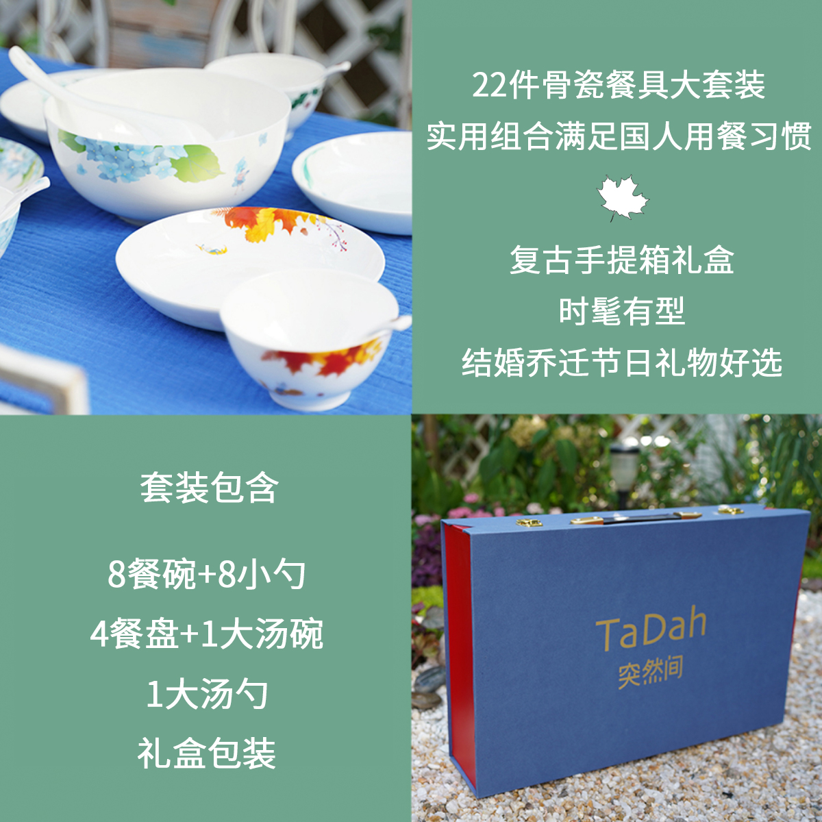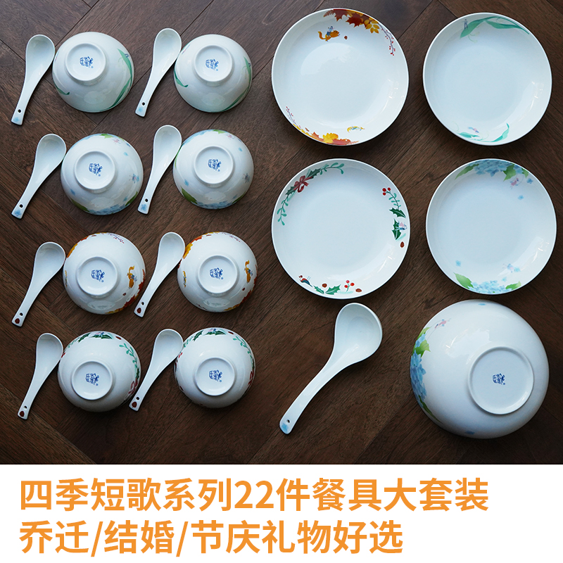 (TaDah suddenly) Four seasons Short song Bone Porcelain Tableware 22 Pieces Sets Jo to marry Mother's Day Gift