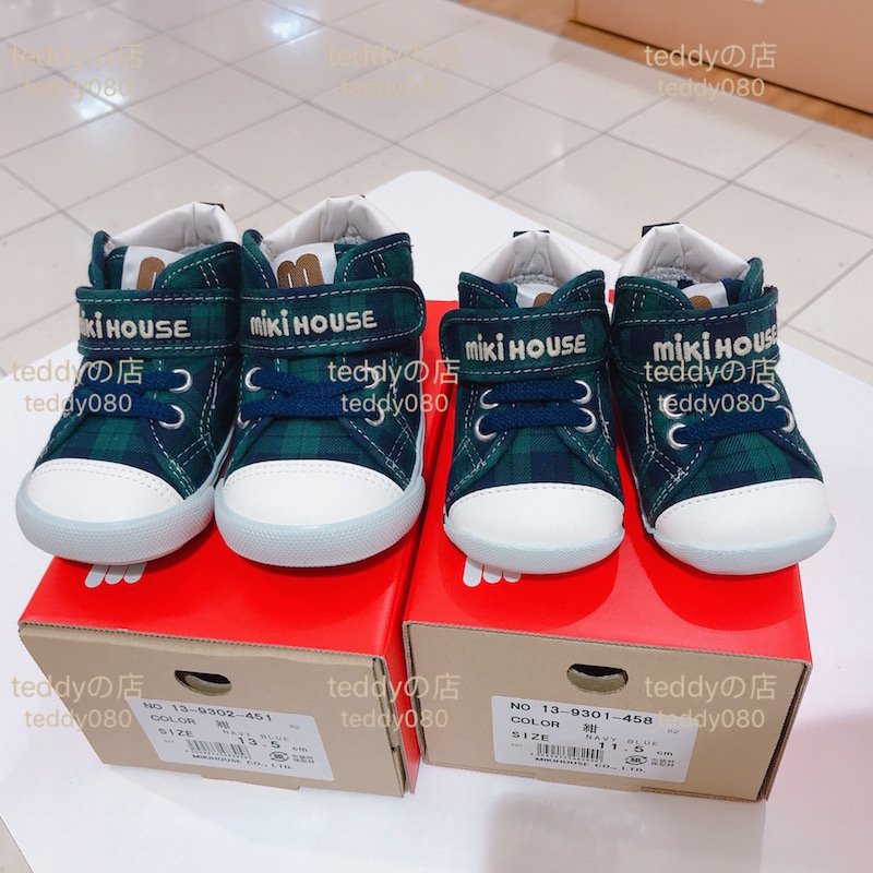 Made in Japan mikihouse one or two plaid infant baby soft-soled toddler shoes 11 5~19cm