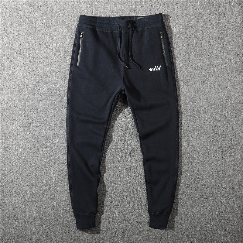 Autumn and winter men's new fleece warm zipper pocket sports pants plus fleece thick small feet pure cotton casual pants - Taobao