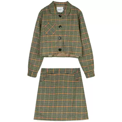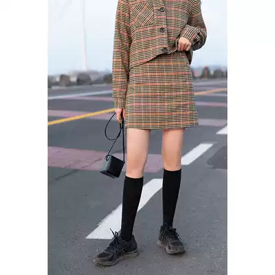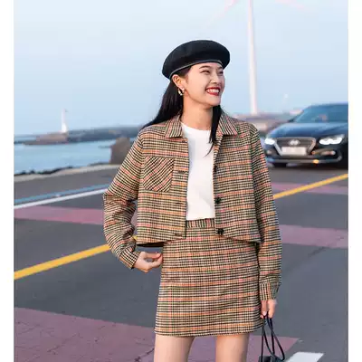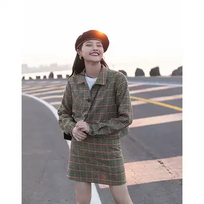 Clearance spike temperament plaid suit women's one-step skirt skirt A- line dress early autumn Joker women tide two-piece set