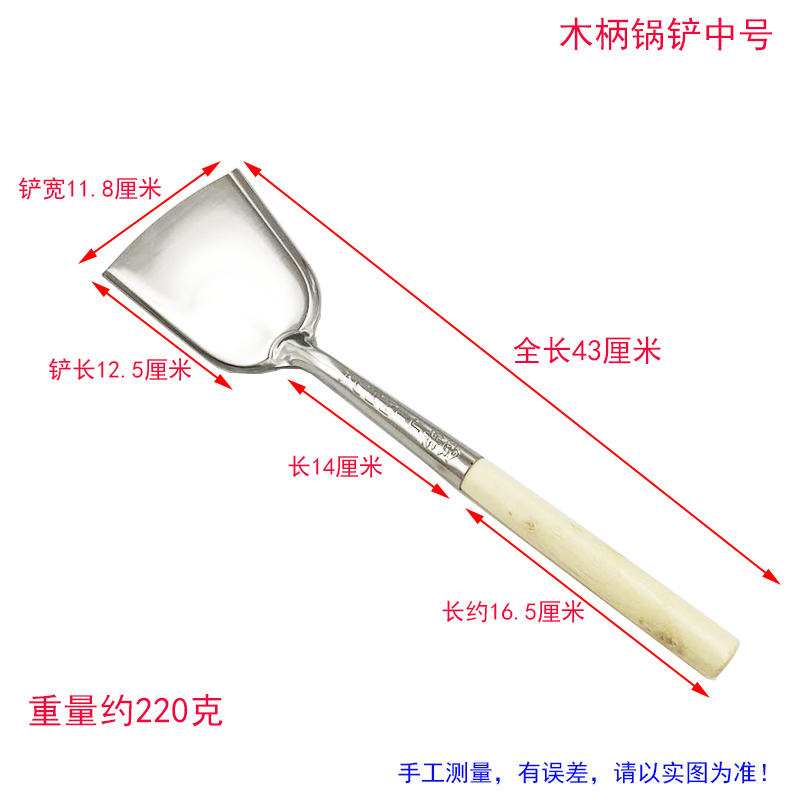 Wood handle small number pan shovel (home) wooden handle midsize pan shovel (home) wood handle large number pan shovel (large pot) wood handle special large number pan shovel (large pot) stainless steel pan shovel Guizhou pan shovel stainless steel soup spoon full stainless steel drain