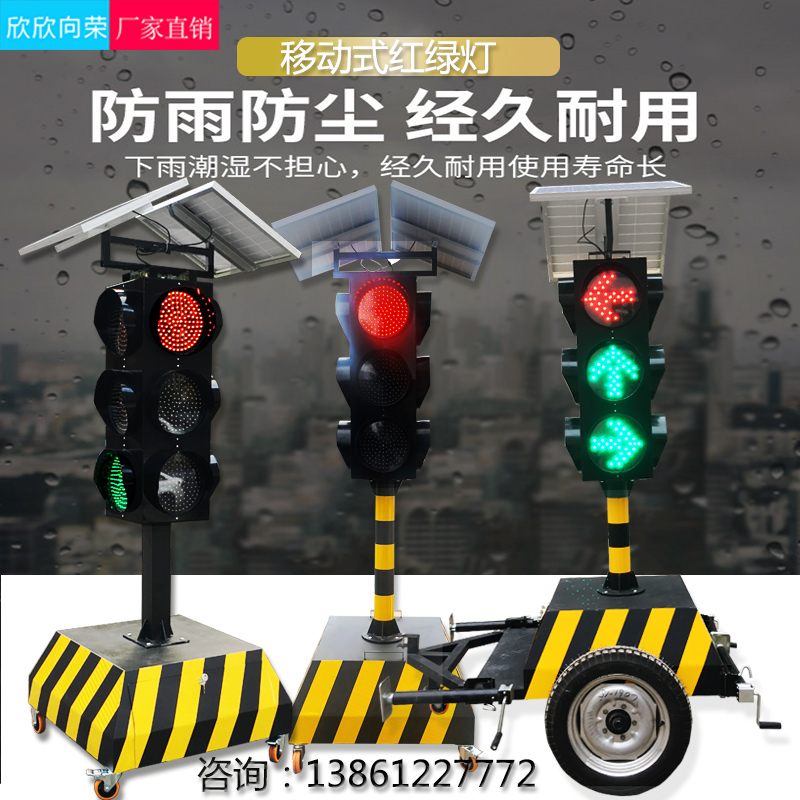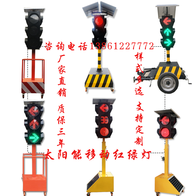 Solar quadruple flashing light single head mobile signal light double head left turn + straight signal light double head with countdown signal light 3 head with countdown signal light 3 head full screen signal light 3 head arrow signal light large base signal light trailer type signal light