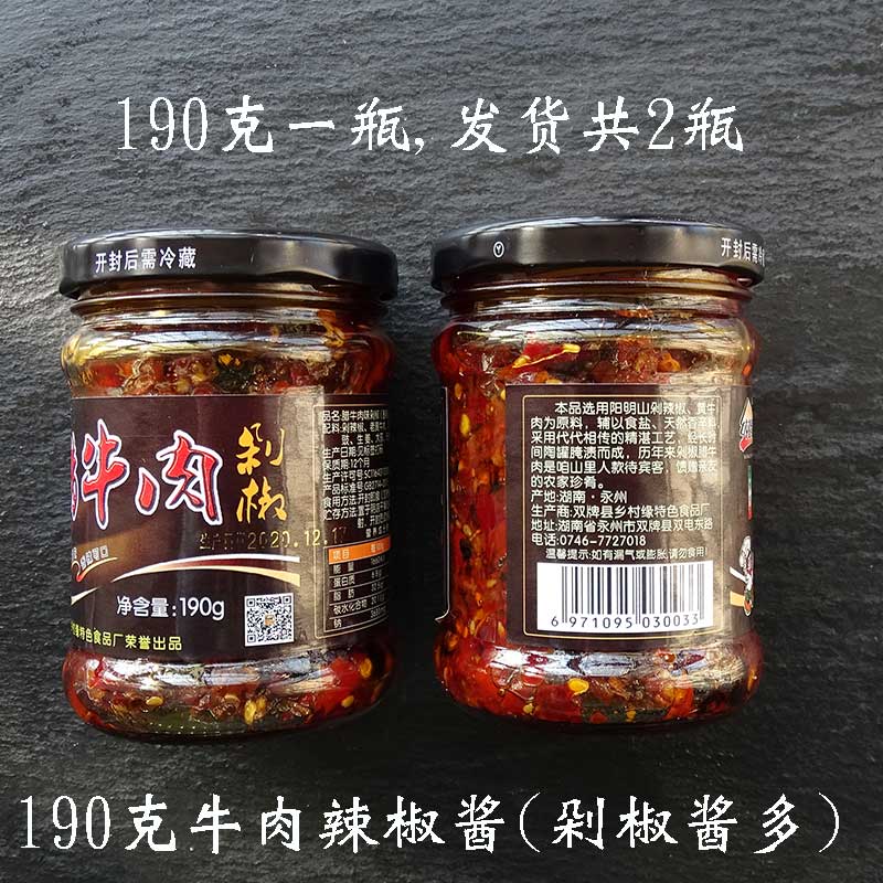 Hunan specialty bacon beef chili sauce Homemade farm Sichuan special spicy chili sauce Spicy sauce 190g*2 bottles