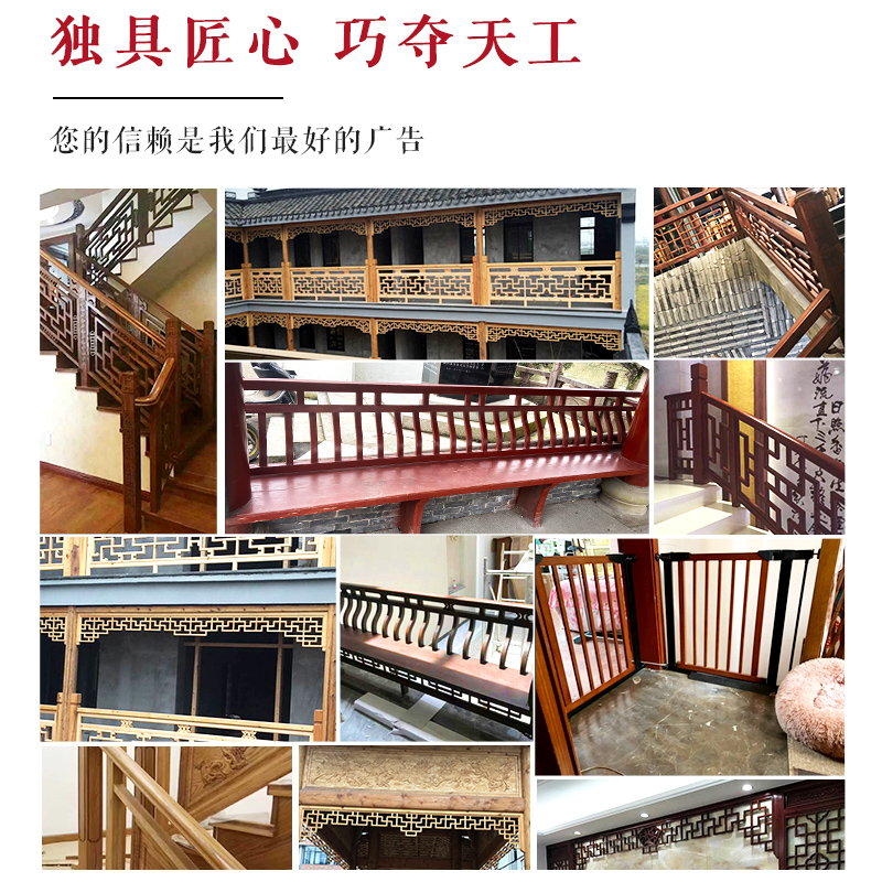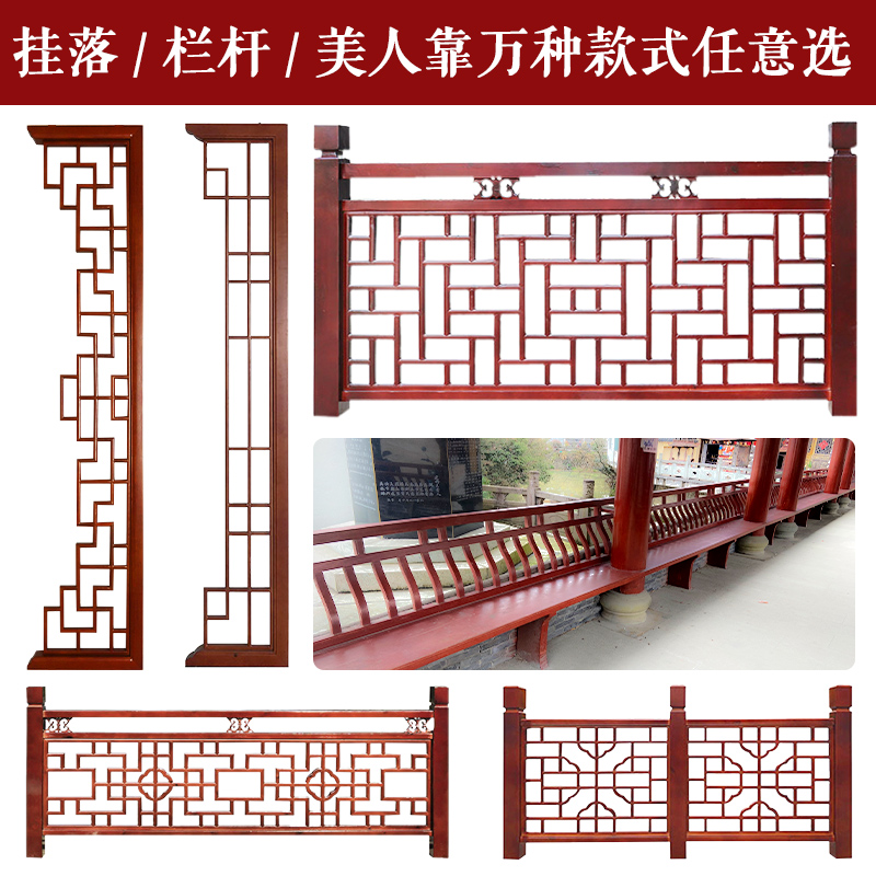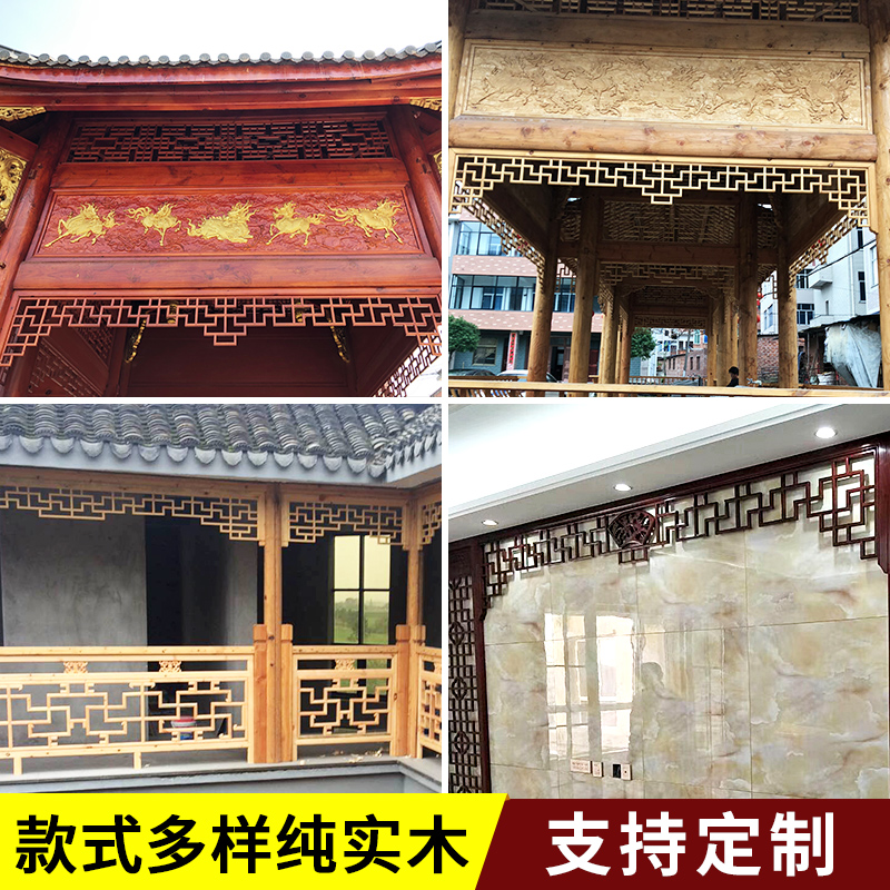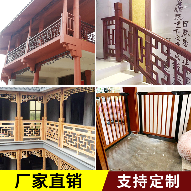 Imitation ancient new Chinese solid wood flower lattice railing embalming wood carved flower stairs armrest floor guard rail fence to hang up the bucket arch
