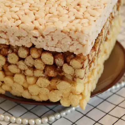 Caramel-flavored popcorn blocks childhood snacks post-80s northeast specialty brown sugar corn crisp rice candy cake