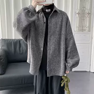 Diablo Japanese antique loose retro Harajuku style men's long sleeve shirt trend bf striped thickened shirt jacket