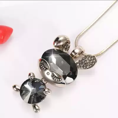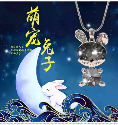 Zircon Crystal cute little rabbit necklace female Korean autumn and winter sweater refining female long version decorative hanging ornaments Joker pendant