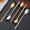 Spoon long handle Korean stainless steel golden spoon net red spoon Household dinner bibimbap round spoon soup spoon Korean