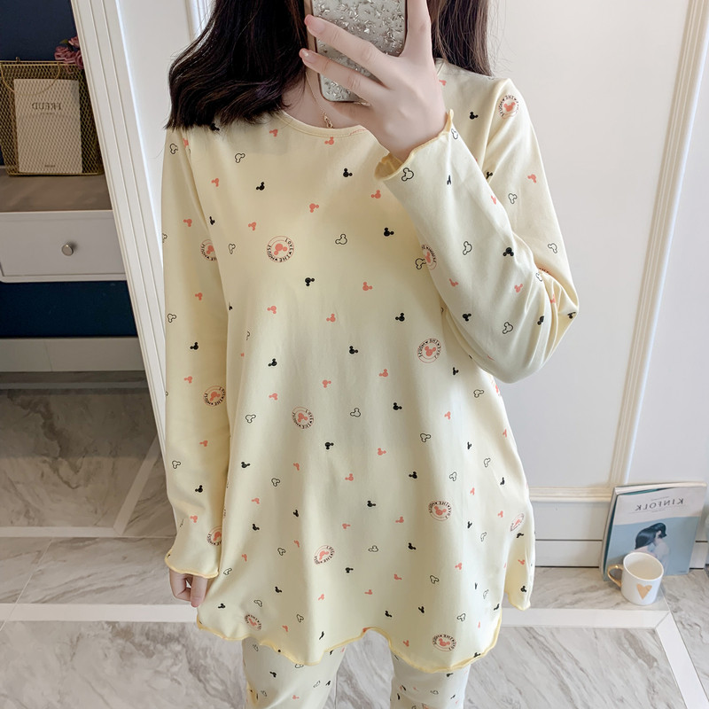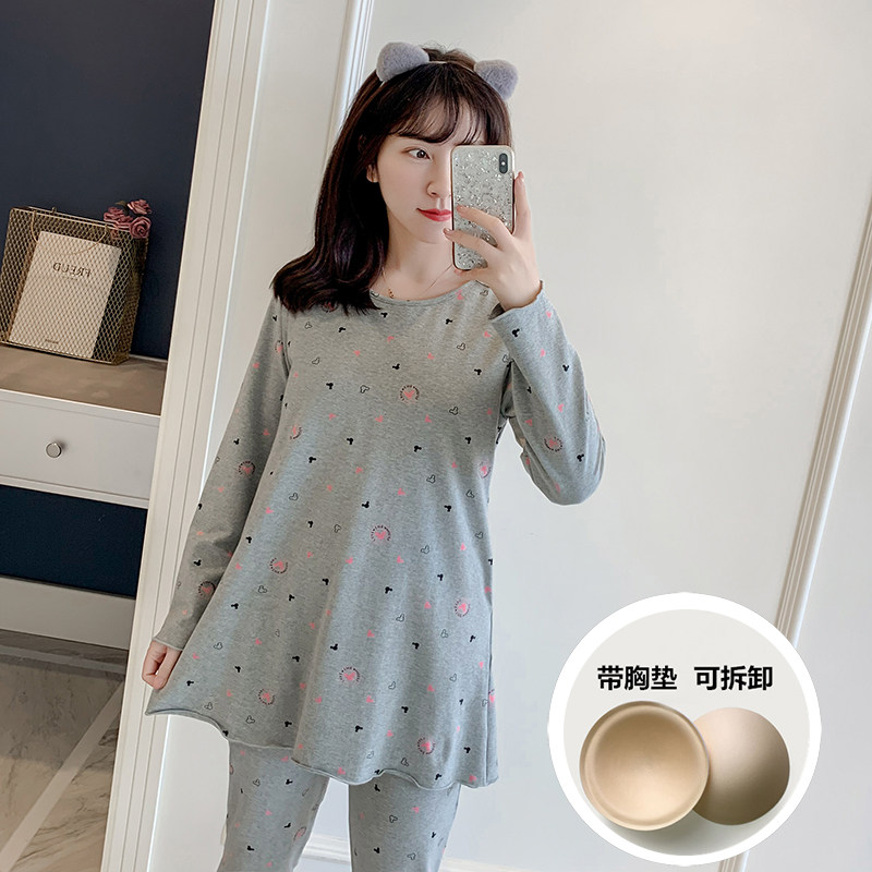 Shinhan edition pure cotton long cuff chest pajamas set women autumn winter cartoon lovely sweet outdoor clothes
