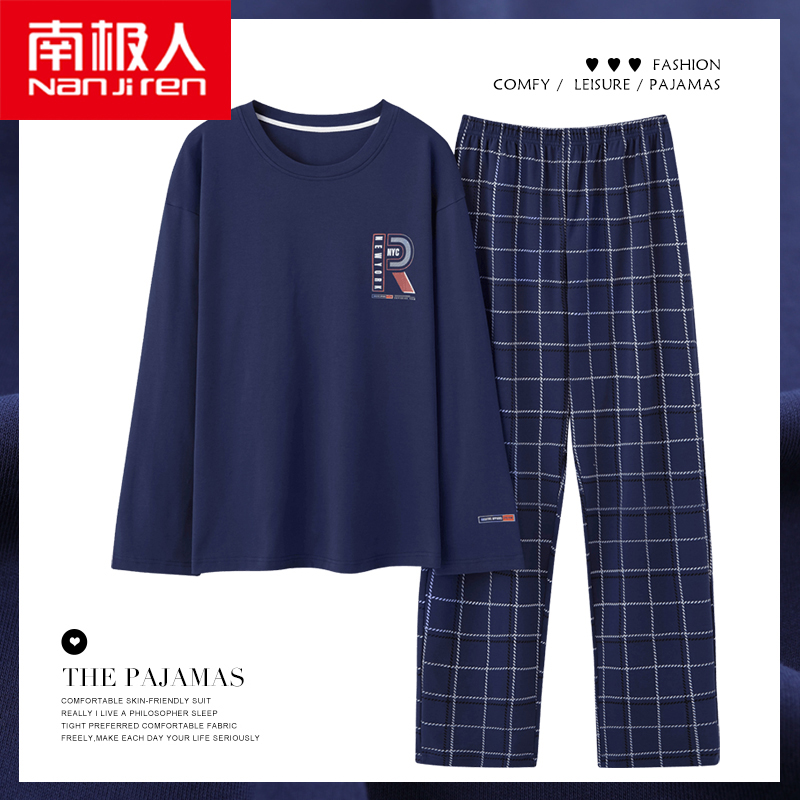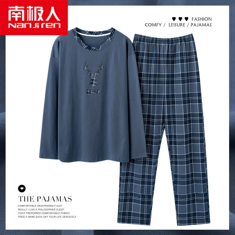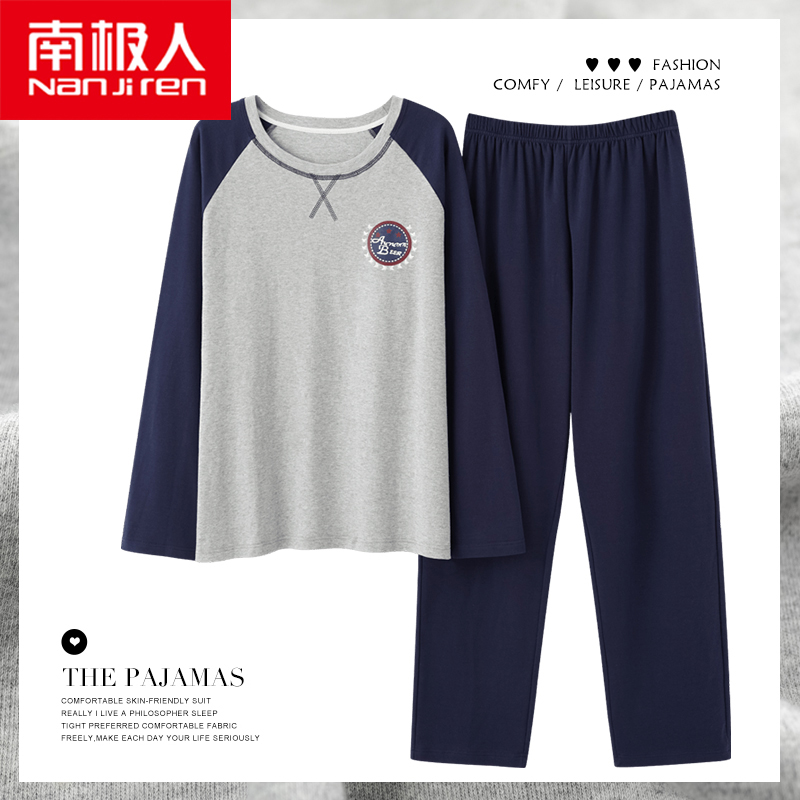 Antarctic men's pajamas spring and autumn long-sleeved cotton suit autumn and winter thin section youth large size home wear men