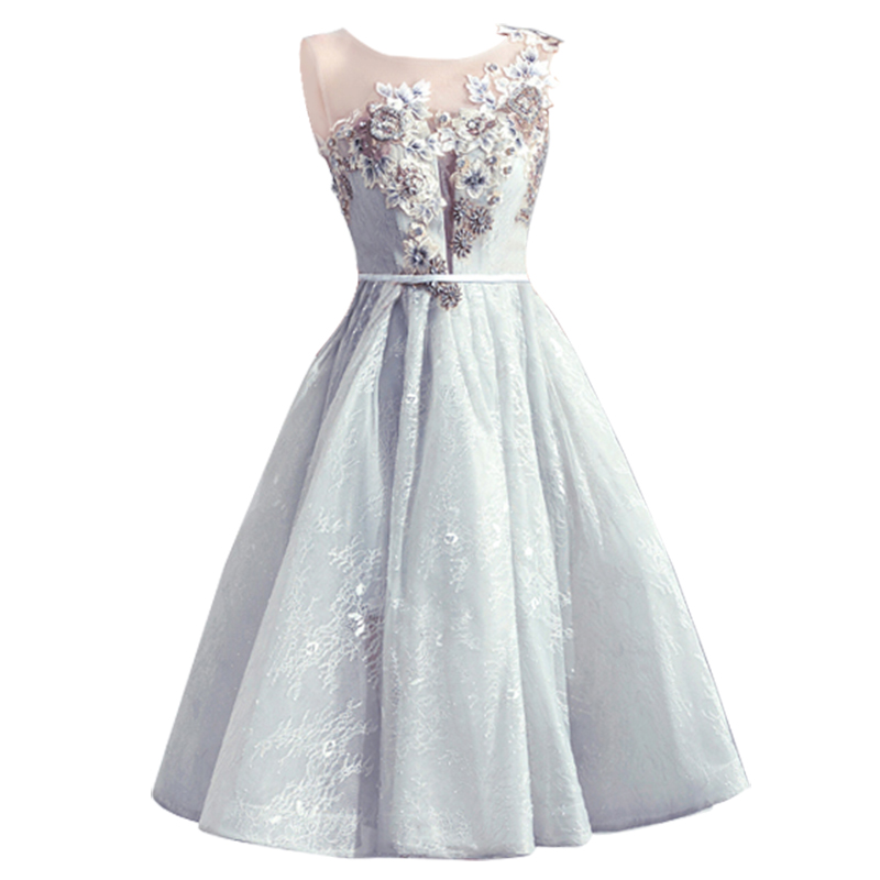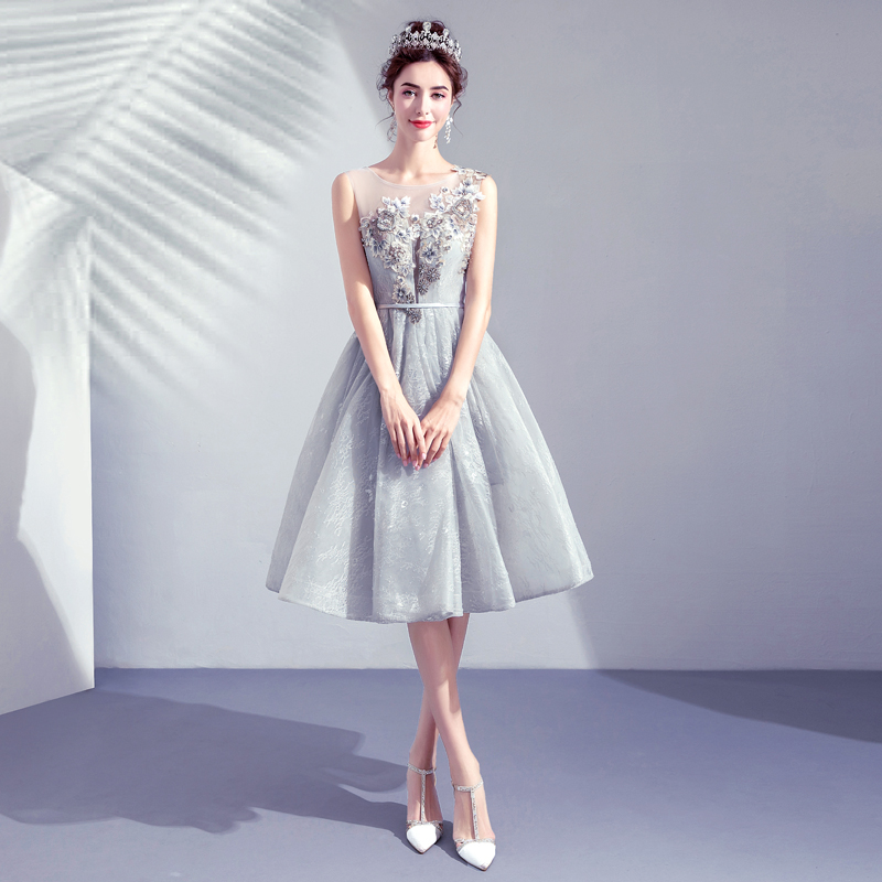 Temperament Famous Yuan Grey Birthday Party Annual Meeting Stage Performance Wedding Dresses Small Evening Dress Foreign Dress 1696Q