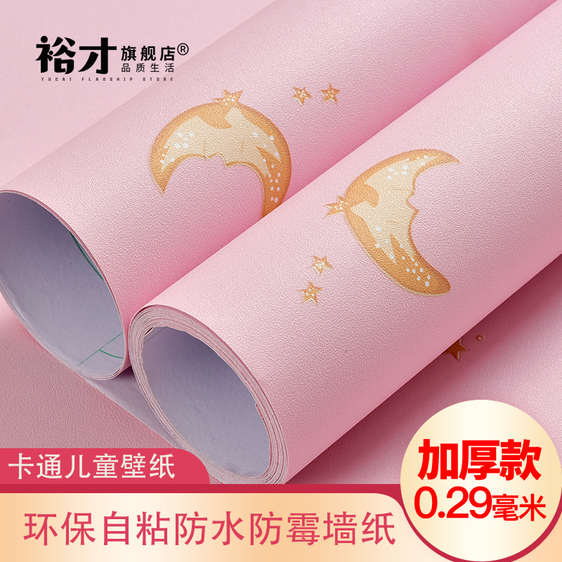 Thickened waterproof PVC cartoon children's room wallpaper self-adhesive boys and girls bedroom cute princess room warm wallpaper