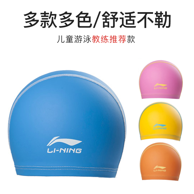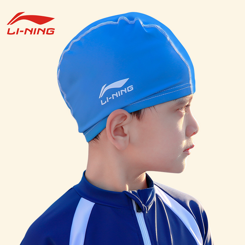 Li Ning children's swimming cap female cute Korean girl boy fabric girl comfortable non-le head cloth PU swimming cap female