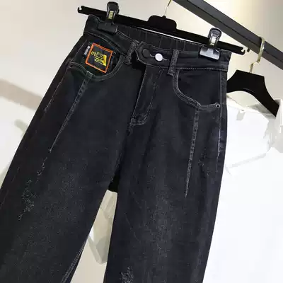 Large size jeans women's elastic loose fat mm pants high waist 200 kg thin crotch thighs thick ribbed harem pants