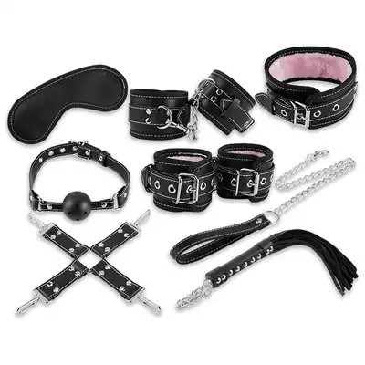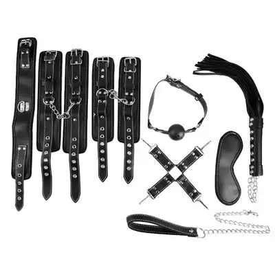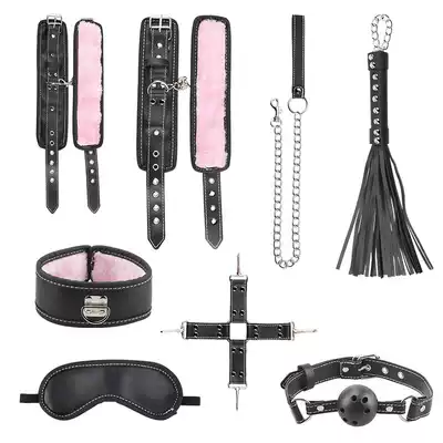 SM novice introductory-leg split (leg with milk bundle eye mask handcuffs sex gift bag) SM (eye mask plug collar rope leash cuffs foot cuffs leather whip cross buckle