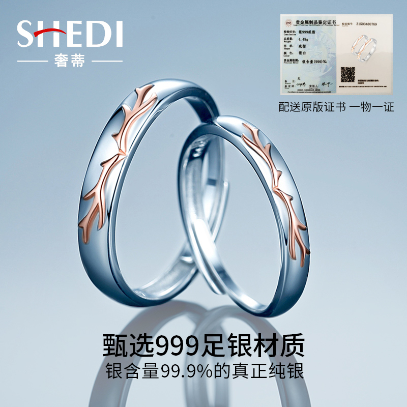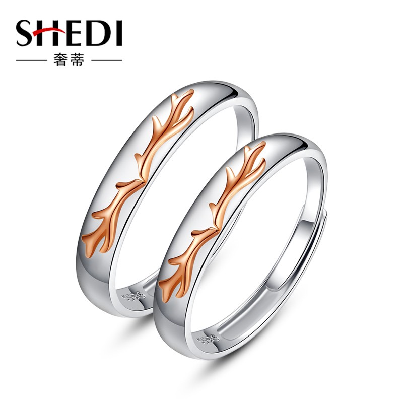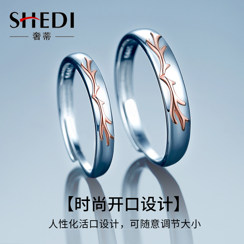 (two sets) Couple ring ear pin light extravagant rose gift box -999 foot silver (four sets) One deer have your four sets of seven New Year's gift boxes -999 foot silver (two sets) couples ring