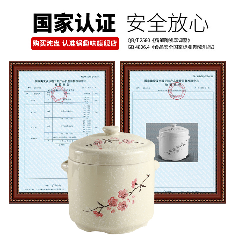 Ceramic water stew cup with lid double lid amphora stewed bird's nest cup steamed egg cup stew pot household liner size stew cup bowl