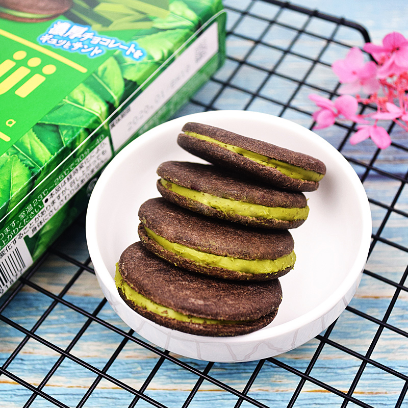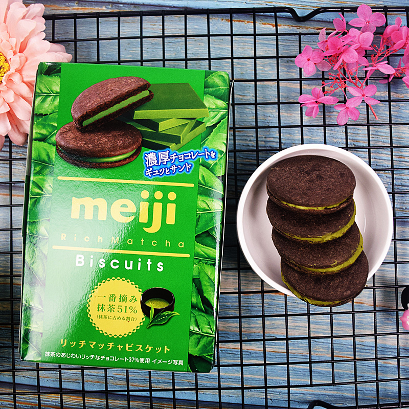 Japanese Import Net Red snacks Meiji Meiji Meiji Smear Tea Sandwich Biscuit Chocolate Caramel Strawberry Taste Little Cookie