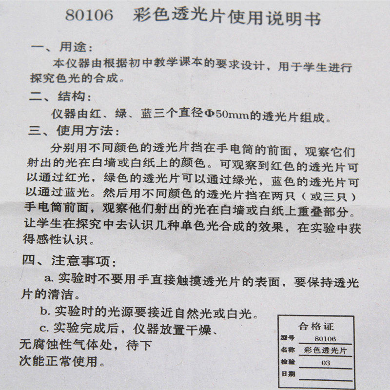 Color light transmitter kindergarten science supplies Children's experimental toy color filter board teaching equipment Teaching equipment Red, green and blue tricolor filter