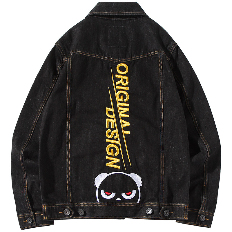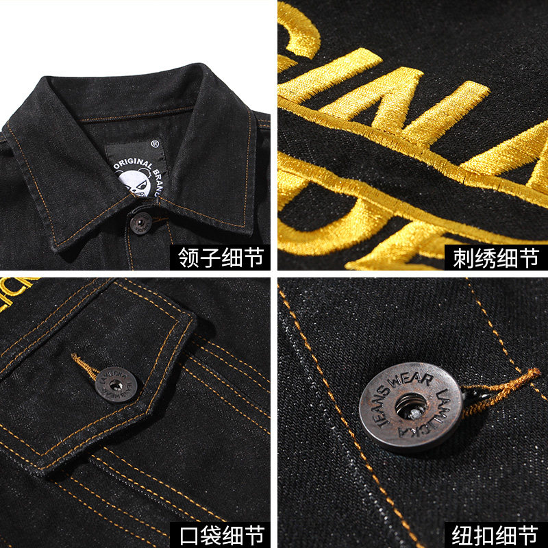 Panda Embroidery Black Denim Jacket Male Tide Card Fall Han Edition Trend Big Size Easy 2021 new clip-shirt