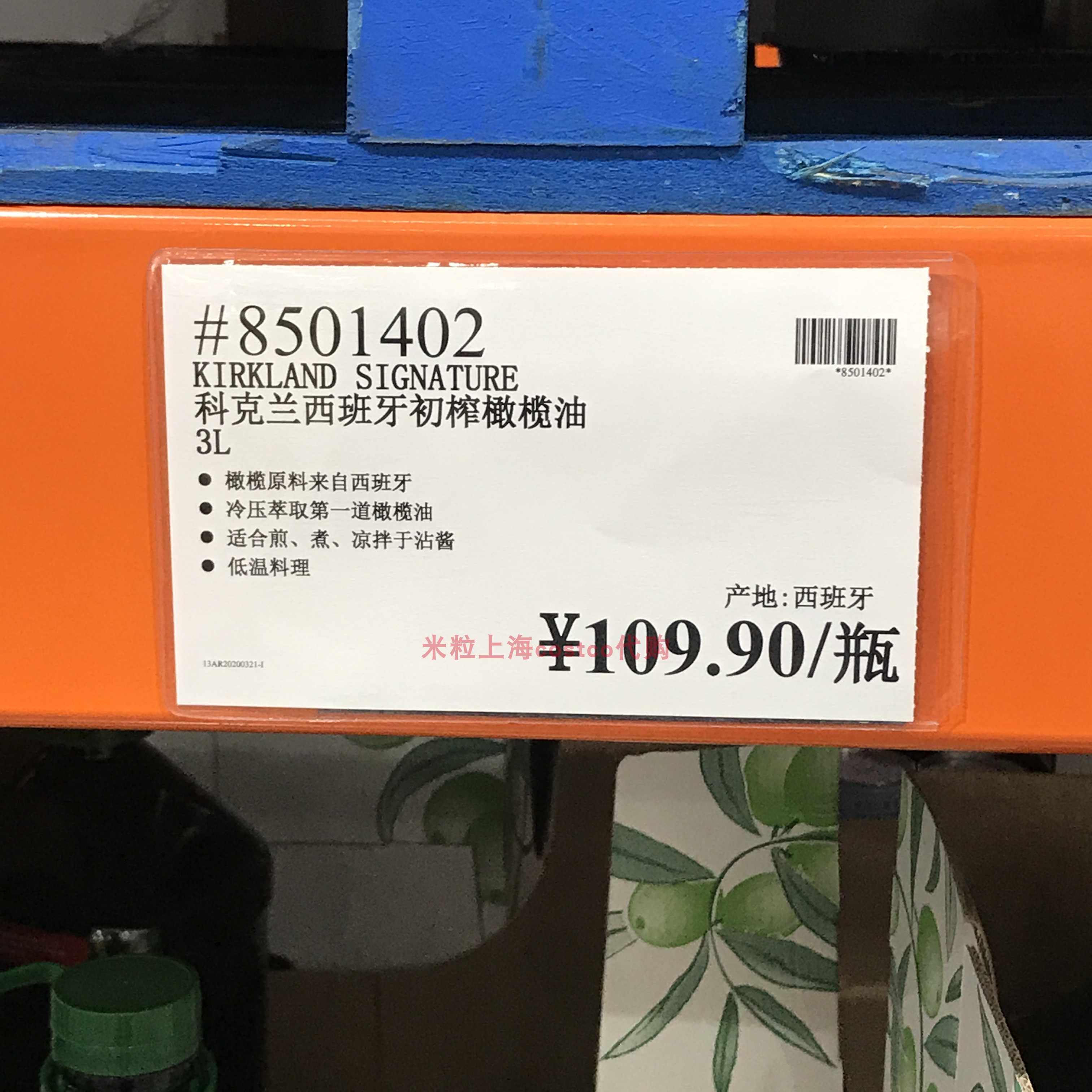 Costco Spain imports Corkland virgin olive oil 3L suitable for cooling