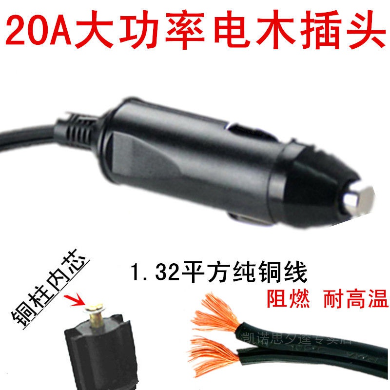 Car load cigarette lighter plug 20A30A high power cheer electromechanical source extension cord conversion electric wood head high temperature resistant