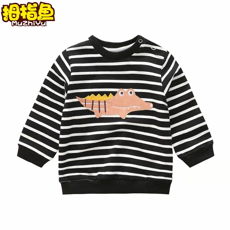 Children casual thick cotton 2022 spring new children printed covering head blouses baby round neck T-shirt with undershirt tide