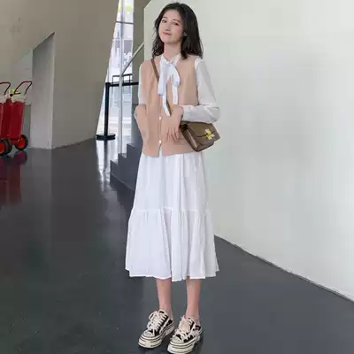 Fat mm inner dress spring and autumn 2021 new women's spring tide big size thin two-piece set foreign pie