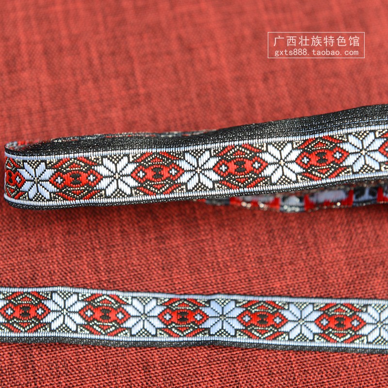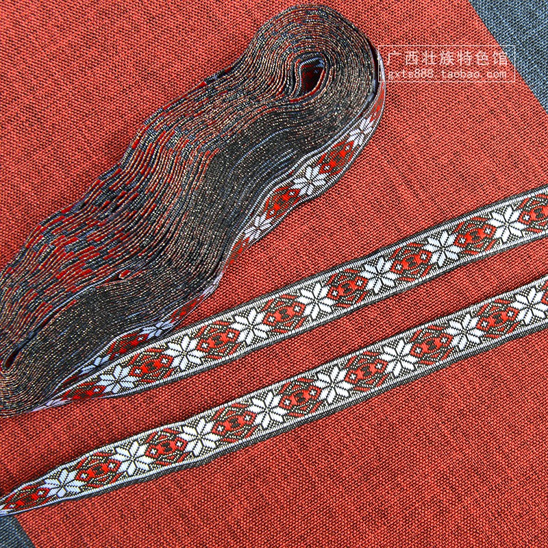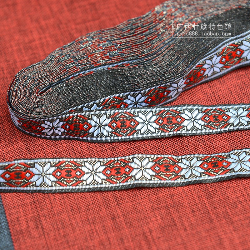 Zhuang Tutotem Ancient Magnificent and Patterned Embroidered Webbing Webbing of Ethnic Minority Apparel Clothing Lace Accessories and Accessories Paving