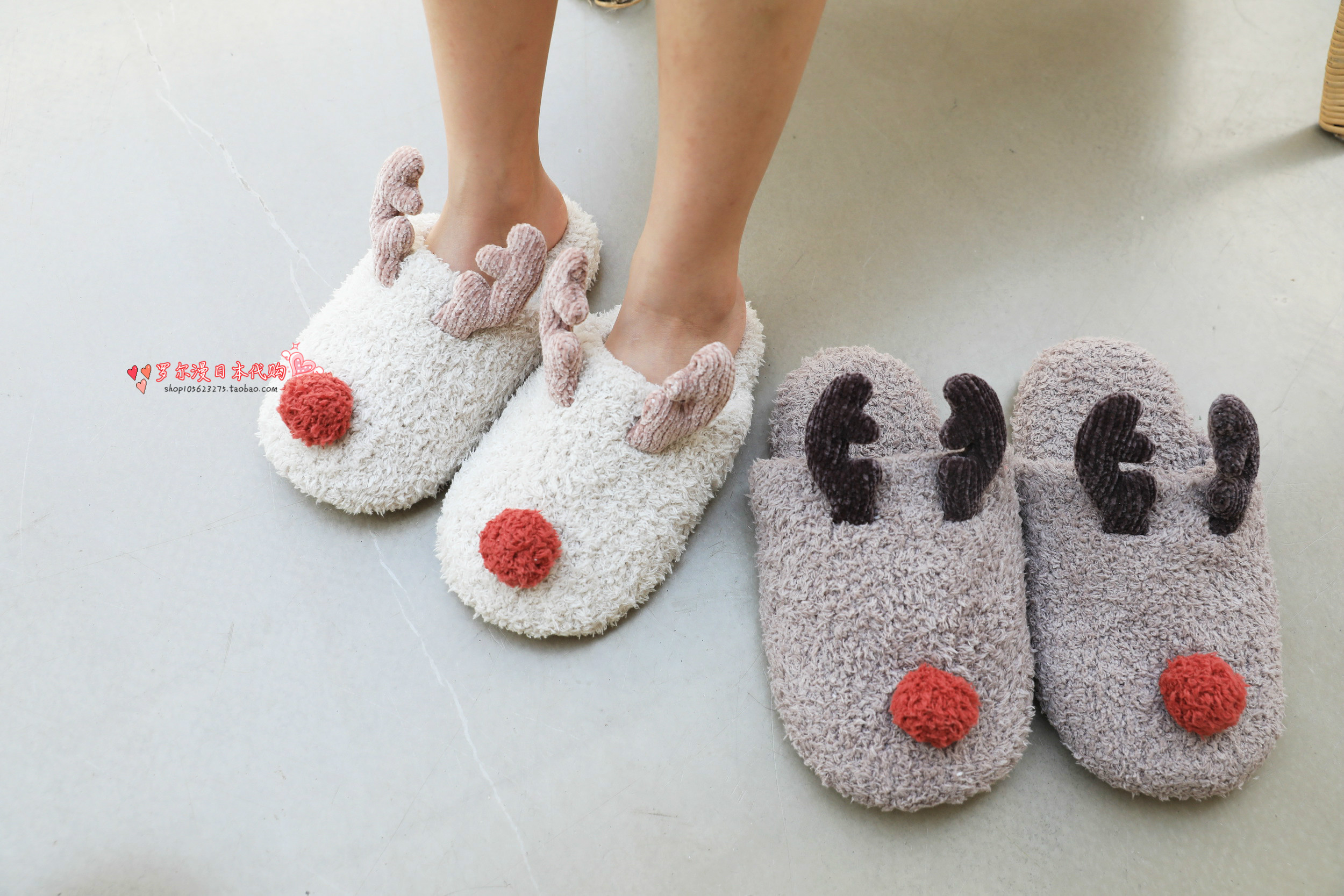 Japanese soft honeys lovers soft and cute elk cartoon home cotton shoes floor slippers winter
