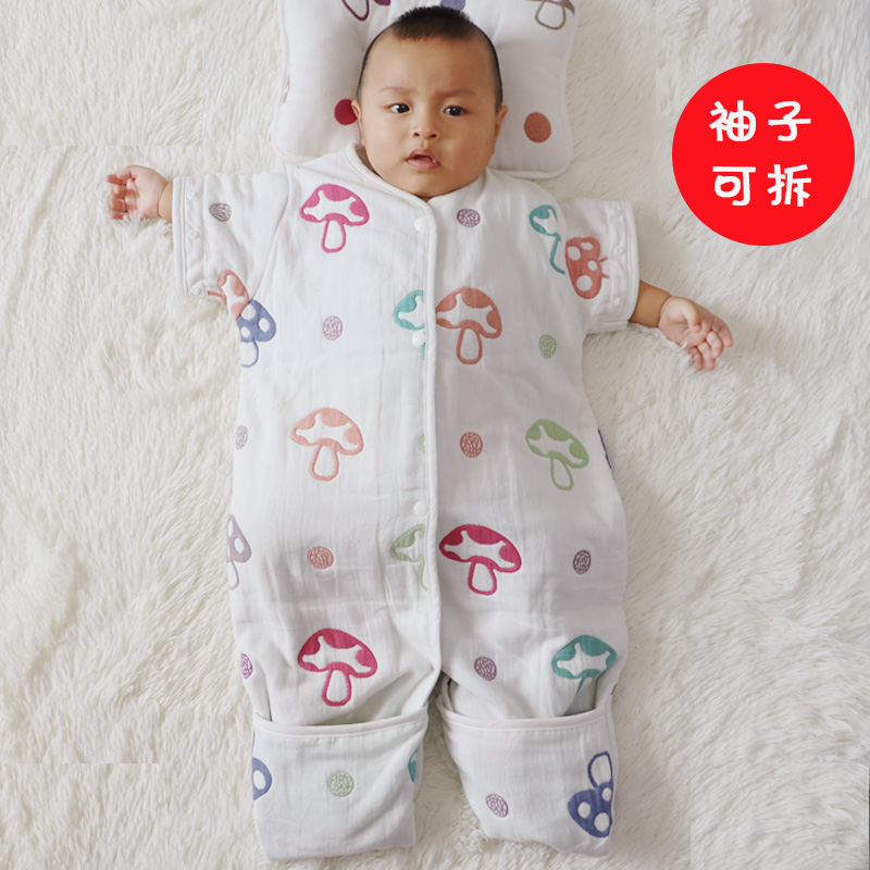 Japan's new mushroom baby sleeping bag detachable sleeve three or six layers of pure cotton gauze split legs baby anti-kick quilt can be wrapped in feet