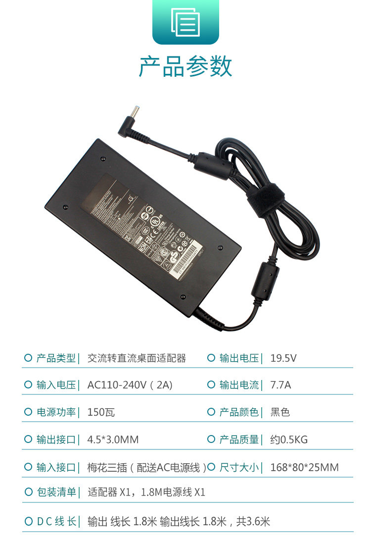 HP 19 5V 7 7A Light and Shadow Elf 5 Light and Shadow 4 Notebook Charger 150W Notebook Power Adapter