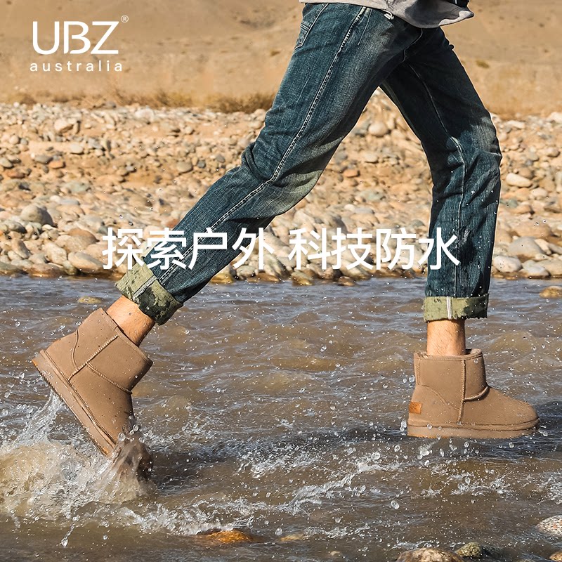 UBZ waterproof snow boots men's short tube 2022 new winter warm plus velvet outdoor non-slip northeast thick cotton shoes
