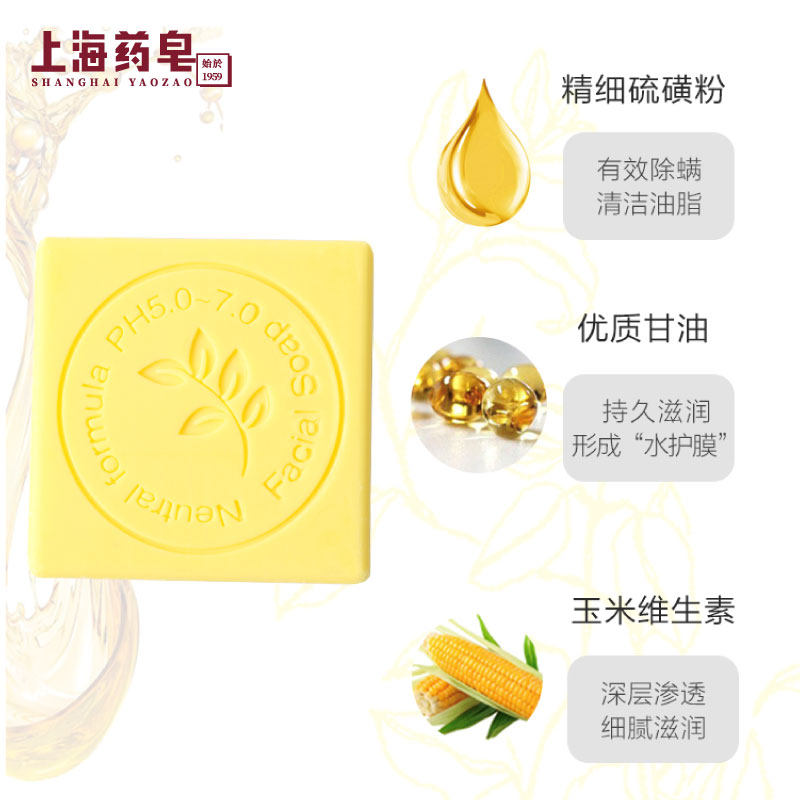 Shanghai Drug soap Mei back sulfur soap 40g Except mites anti-mite deep net skin cleaning pores Non-sea salt sulfur soap