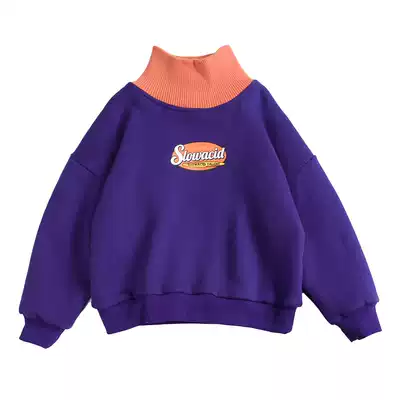 Pear small leisure boys and girls 2020 Autumn new children Korean version of Chaoyang high collar double layer plus Velvet
