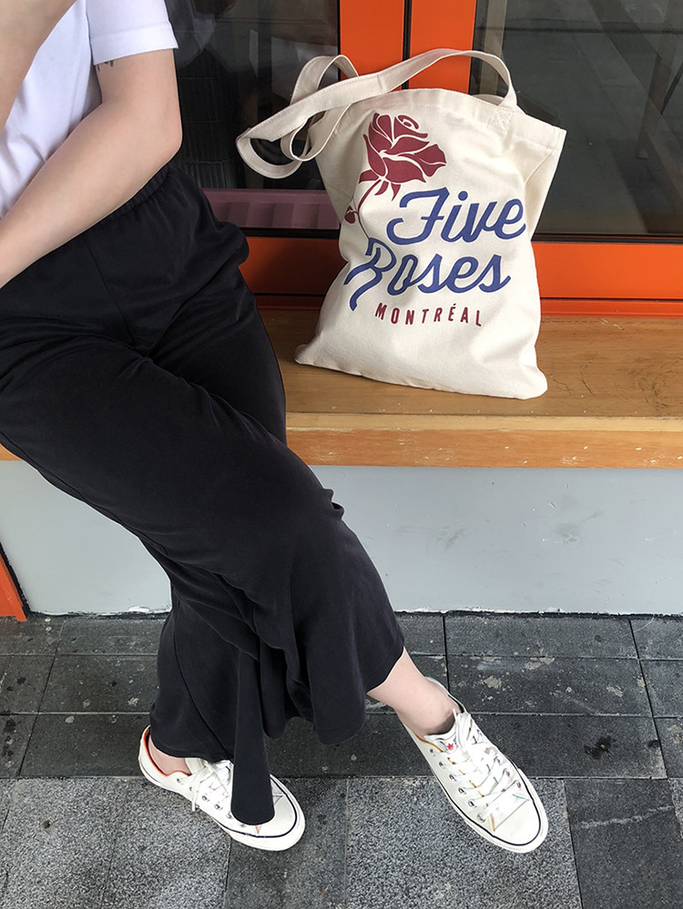 Home Center Rice Apricot Pink Sail Bag Rose Printed Large Capacity Environmental Protection Bag can put into a computer with pockets Japan-ROK