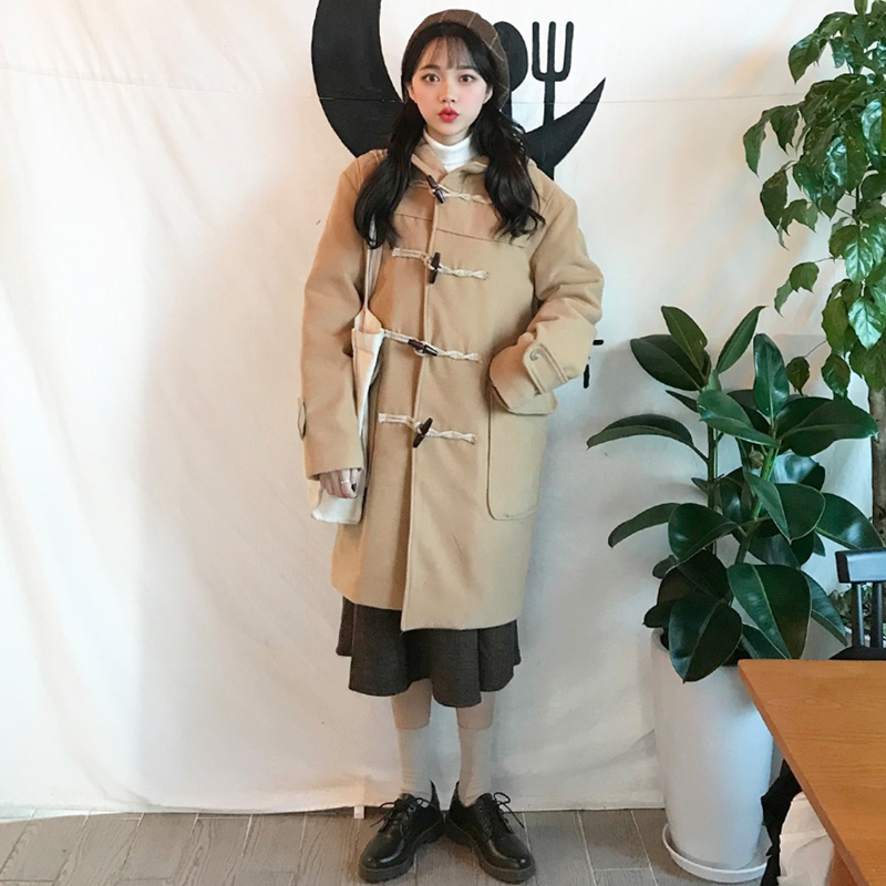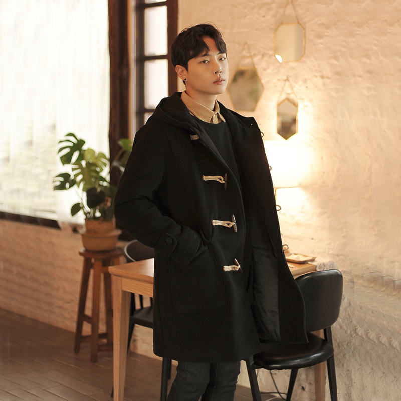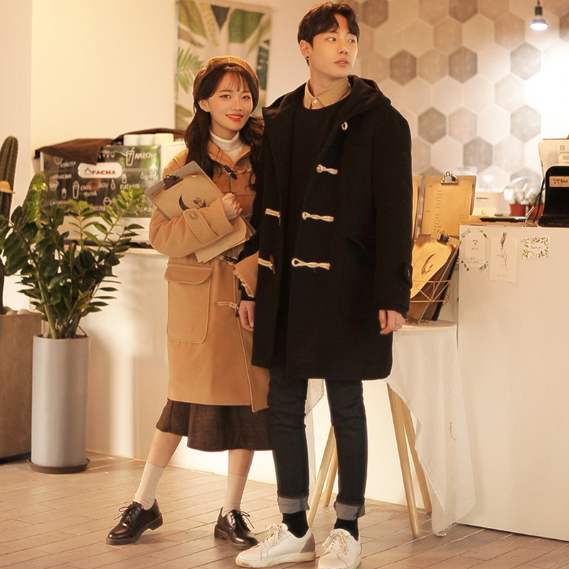 Couple clothing autumn and winter New woolen coat men's medium and long version over the knee thickened horn buckle woolen trench coat coat