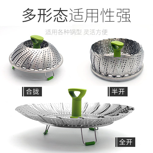 Stainless steel steam dish rack telescopic folding and steaming rack steam coop multifunction water-steaming grids Home Steaming Pan Steamer Round