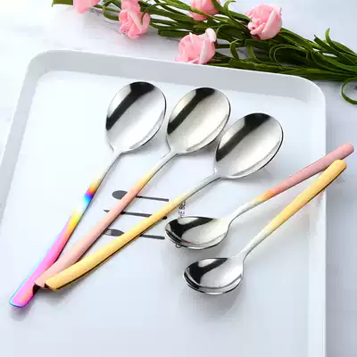 Stainless steel soup spoon Household soup spoon Western spoon Adult large long handle children's eating creative cute little spoon