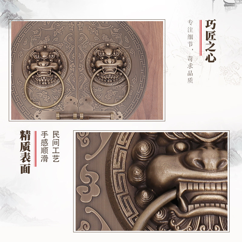 Door knocker Old-fashioned door beast head Vintage door handle Chinese pure copper round lion head decorative antique door copper handle