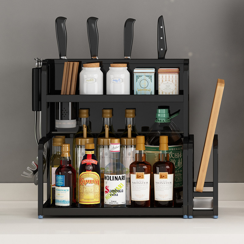 Kitchen Shelving Black Stainless Steel Tool Holder Home Multifunction Supplies Shelf Condiment Jars Shelf Storage shelf