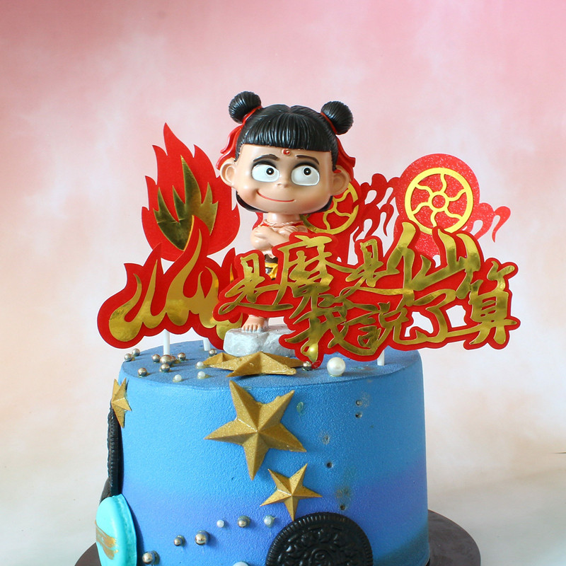 Children Cake Decoration Pendulum decorated with wind fire Wheel Flame Inserted the Magic Boy Three Too Subway Cartoon Birthday Nets Red Cake Accessories